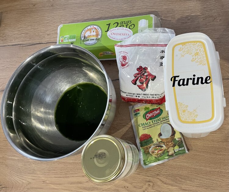 - 300g de feuille de pandan en jus (2 sachets) ou 1 boîte de jus congelé (20cL)