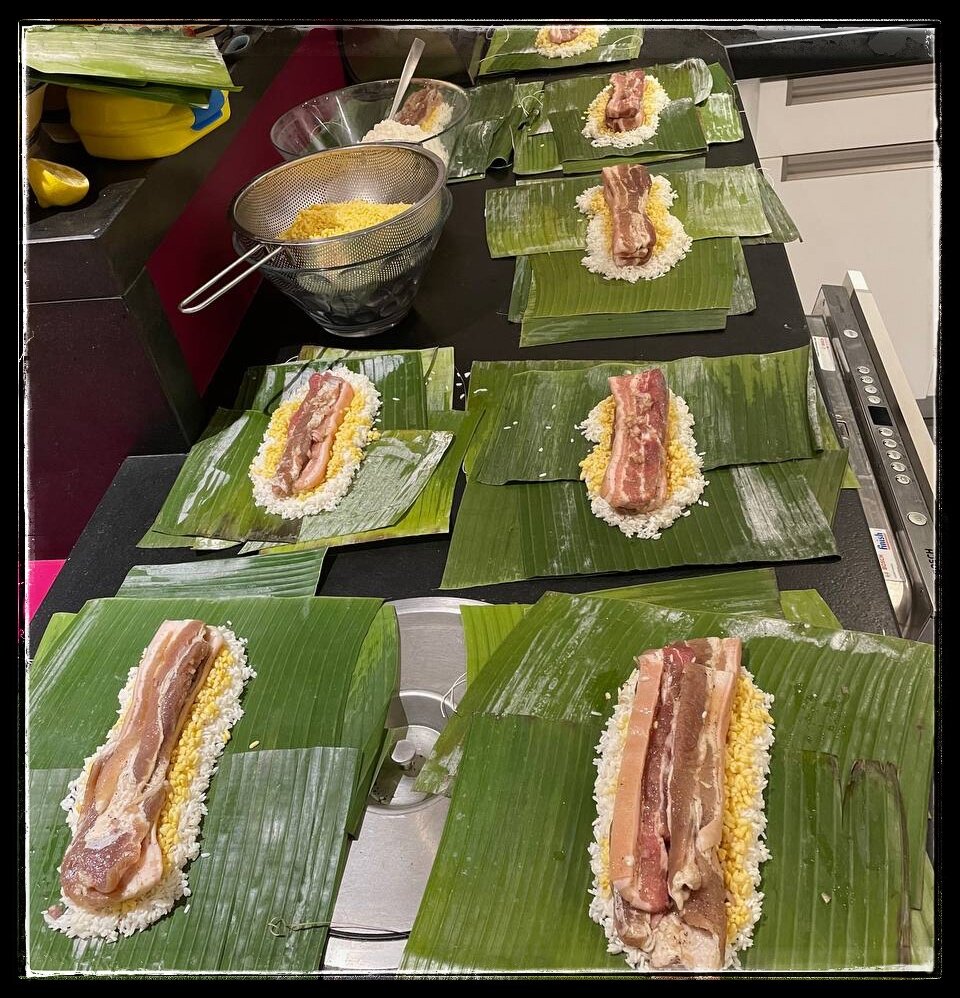 Je prépare souvent 8 banh têt en même temps parce que ça met beaucoup de bazar partout !