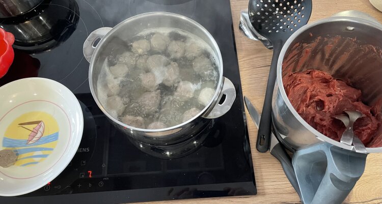 - Faire des boules à la main (humidifiée pour éviter que la viande ne colle) ou à l'aide de 2 cuillères (un peu comme on modèle des quenelles).